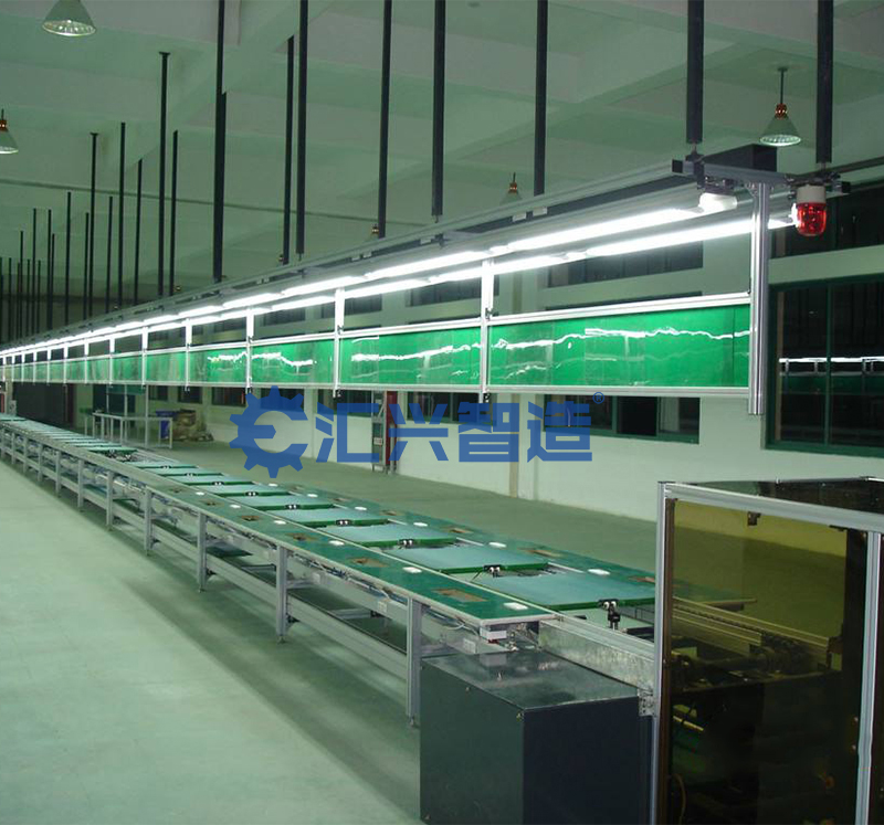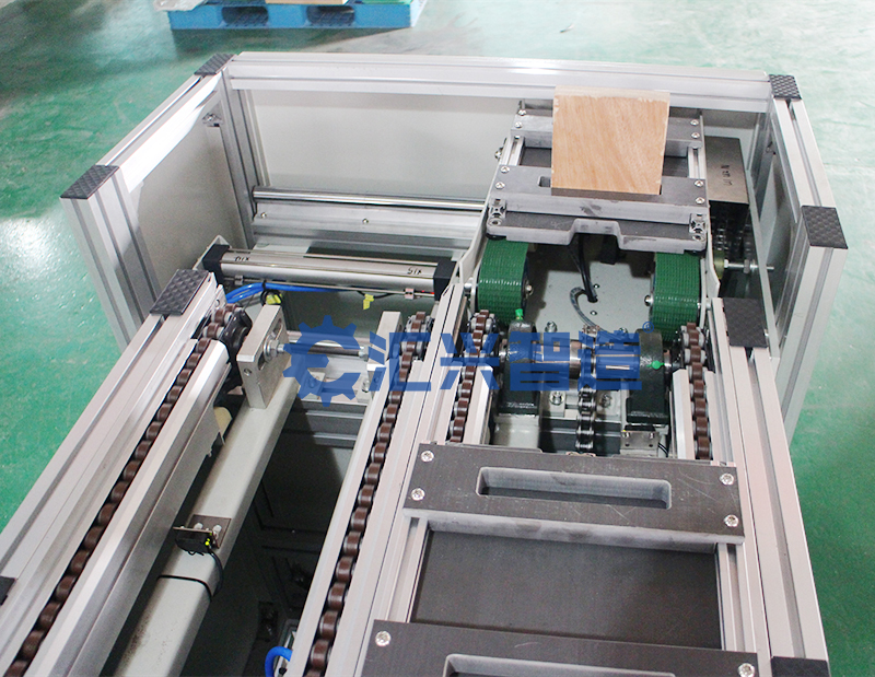 整條包裝線由:紙箱成型封底機(開箱機)、封切熱收縮機、自動裝箱機、噴碼機、折蓋封箱機、角邊封箱機、無人化打包機、棧板供給碼垛機、穿劍式打包機、水平式打包機、在線纏繞包裝機及輸送機組成。此款包裝線為匯興智造最完整成套設備,整套包裝可實現無人化運行、包裝外觀整潔、穩固。開箱機完成吸箱、開箱、膠帶封底,輸送到積放滾筒輸送機,阻擋器阻擋紙箱。