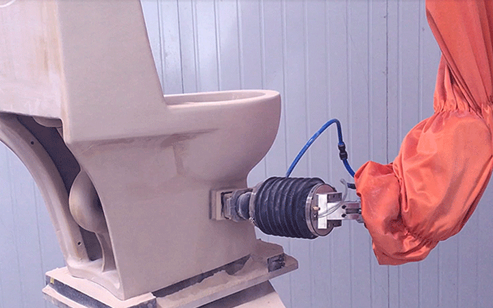 匯興智造馬桶打磨機械人可實現產量翻4倍,生產周期時間縮短1/5,總廢料率降至2%,設備停機時間接近于零,并能確保質量,提高生產率。