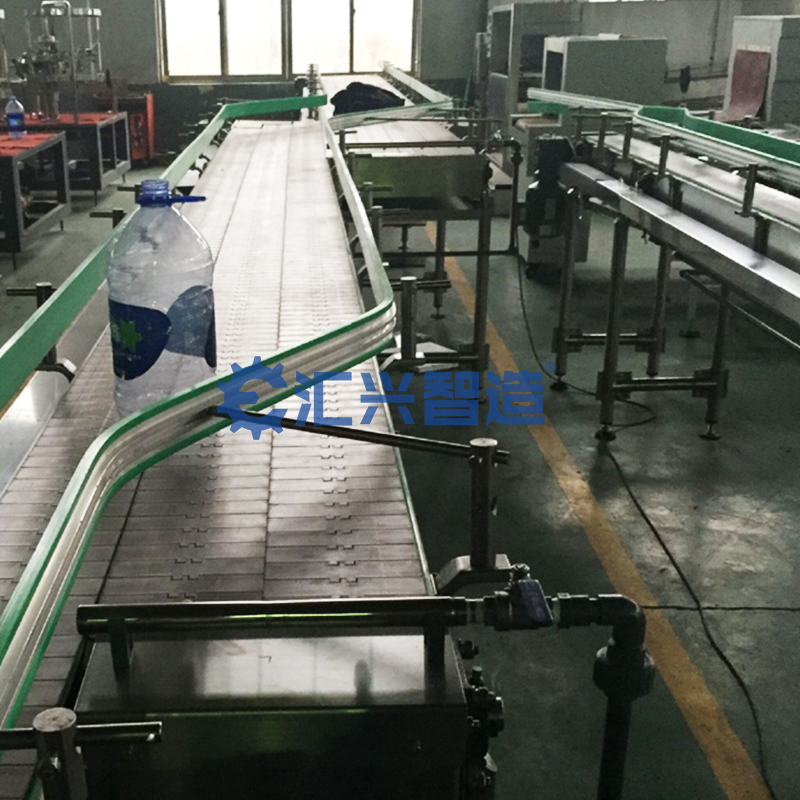 5、鏈板輸送線一般都可以直接用水沖洗或直接浸泡在水中。設備清潔方便,能滿足食品、飲料行業對衛生的要求。