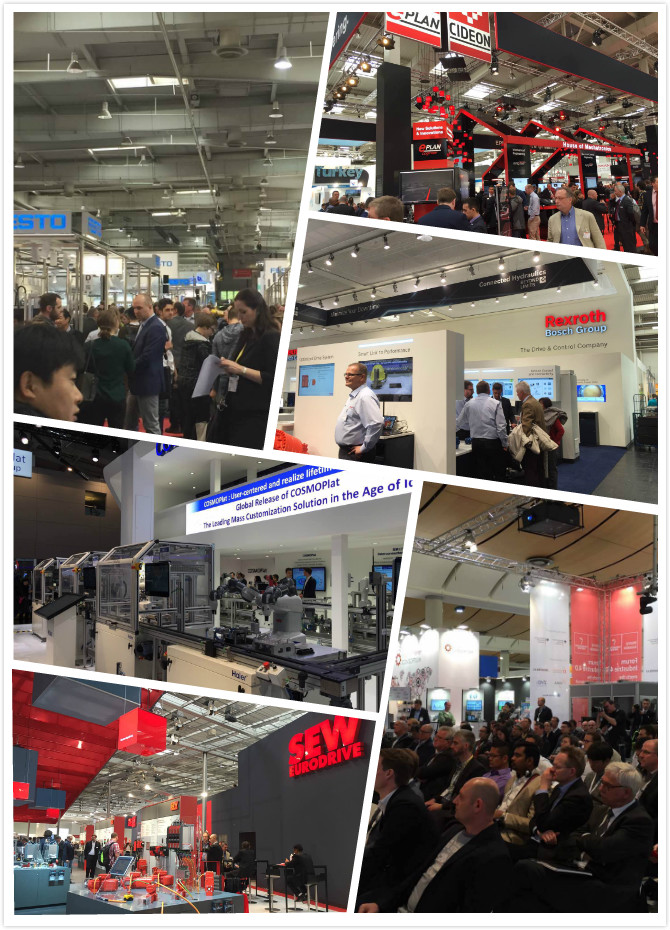 第一天,考察團來到了德國漢諾威工業博覽會現場,一睹全球最有影響力的工業會展。2017年的德國漢諾威工業博覽會(HANNOVER MESSE 2017)的主題是產業集成-創造價值。制造業最強陣營的德國、美國、日本工業巨頭展臺上都亮出自己的工業,以為主。看不見的軟件通過虛擬的互聯網,不僅改變了設備設計、生產和操作,也改變了工業習慣乃至消費習慣。虛實結合,虛擬越來越鑲嵌在實體生產和生活中。在這次觀展中,鐘董感受了前沿工業技術帶來的震撼,趁此考察機會,多借鑒優秀企業的成功經驗。