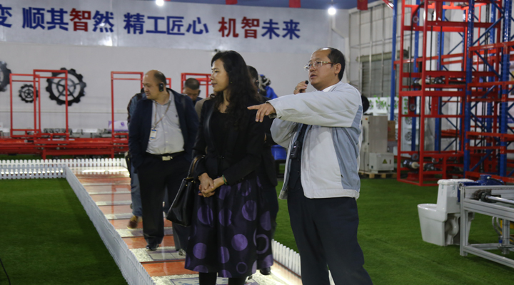 匯興智造董事長鐘輝陪同來訪領(lǐng)導(dǎo)參觀智能裝備體驗館