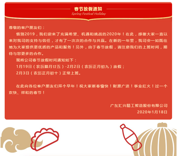 尊敬的客戶朋友們: 惜別2019,我們迎來了充滿希望、機遇和挑戰的2020年!在此,感謝大家一直以來對我司的支持與......